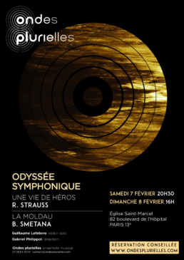 Saison 2025/2026 Odyssée symphonique Richard STRAUSS Une vie de héros Bedřich SMETANA Vltava (La Moldau) Gabriel PHILIPPOT · Direction Réservation en ligne Samedi 7 février 20h30 Dimanche 8 février 16HLieux des concerts Église Saint-Marcel 82 bd de l’Hôpital 75013 Paris